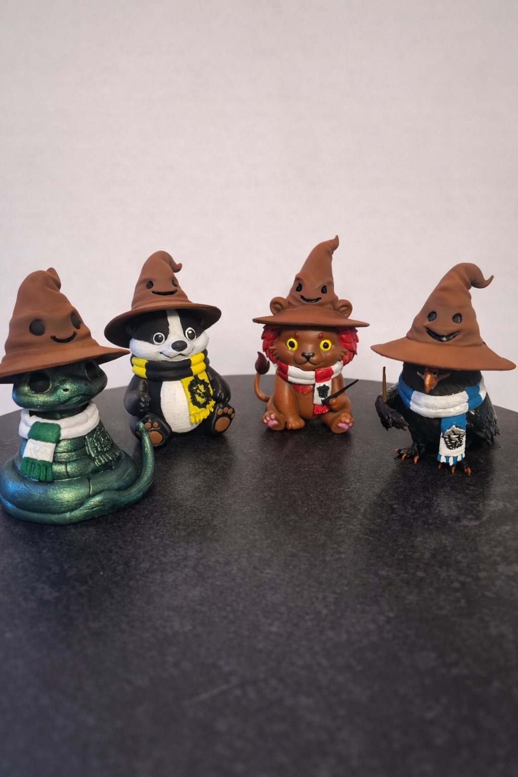 Chaque pièce représente une maison avec son animal emblématique, revisité dans un style adorable, détaillé et entièrement fait main. Que vous soyez collectionneur, passionné de cosplay ou amoureux d’objets artisanaux, ce pack est une véritable pièce de collection.